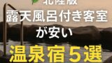 今回は、楽天トラベルなどの宿泊サイトで高評価を獲得している中から、1万円前後で泊まれる露天風呂付き客室のある宿を厳選して5軒ご紹介します!