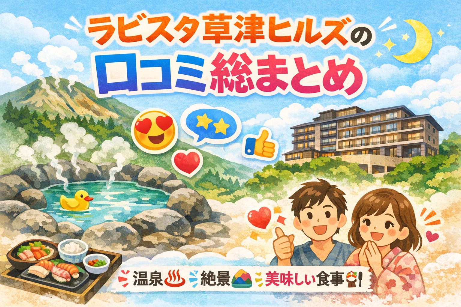 この記事では、ラビスタ草津ヒルズ 共立リゾートの口コミをもとに、温泉・食事・ラウンジなどの良かった点だけでなく、予約前に知っておくと安心な注意点まで、分かりやすくまとめました。読むだけで、自分に合う宿かどうかが判断できるようにしています✅